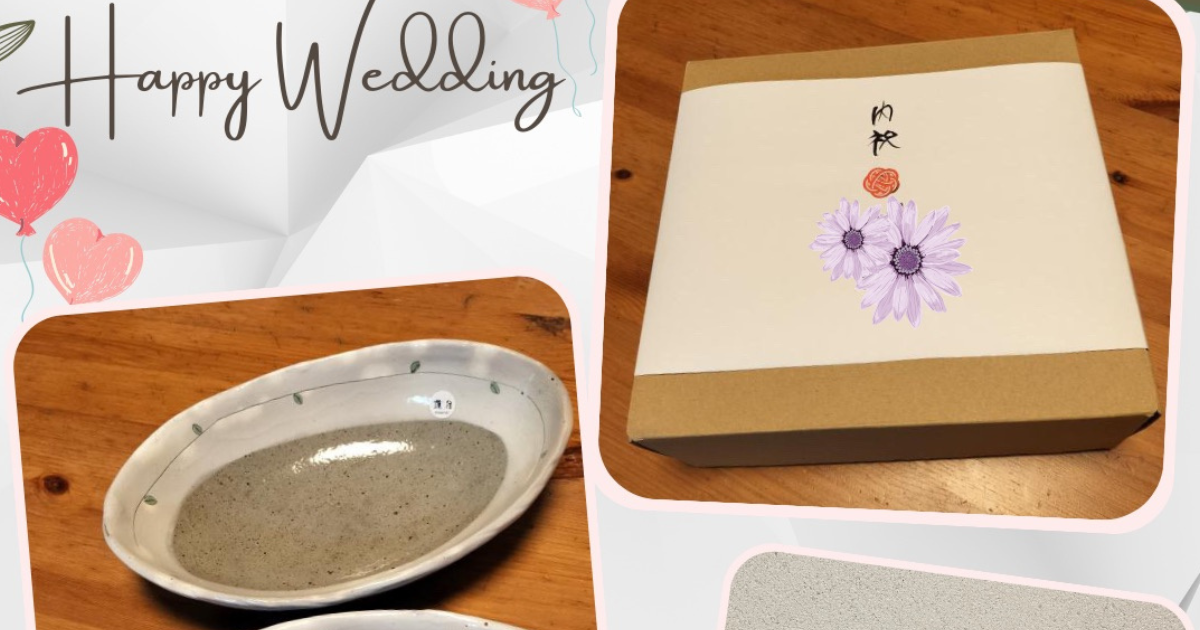 Happy Wedding💐内祝いのお品として、蓮月のオリジナルオーバル皿をお選びいただきました。